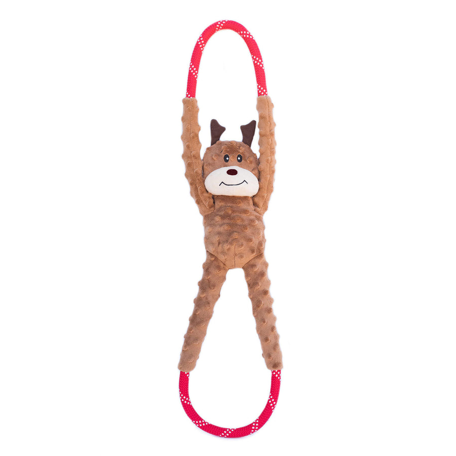 Tug of war just got a lot more festive with the Holiday RopeTugz® Reindeer from ZippyPaws! Featuring durable rope looped through its entire body, this extra-tough rope toy can withstand hours of tug of war play with your pup.