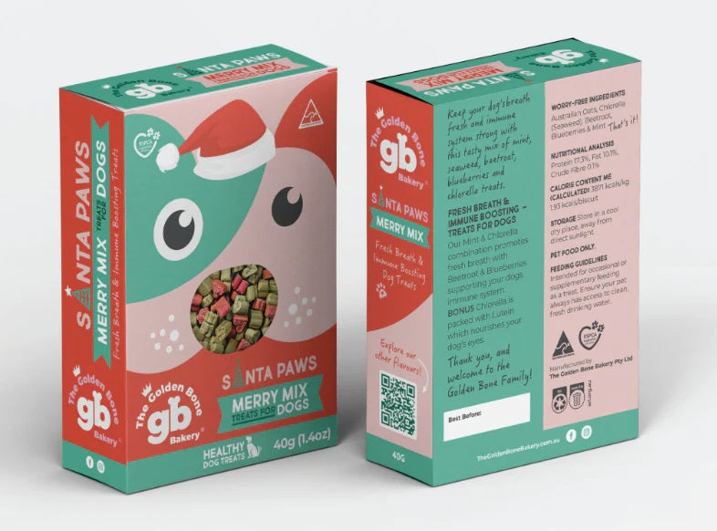 Celebrate Christmas with our Santa Paws Merry Mix—a festive blend of Fresh Breath green treats and Immune Booster pink treats! Perfect for stockings, dog Christmas parties, or a fun day at the dog park, these colorful treats bring joy and health together. Made with care and packed with natural ingredients, they’ll keep your pup happy and energized all season long. Spread the holiday cheer with a delicious, healthy treat your dog will love!
