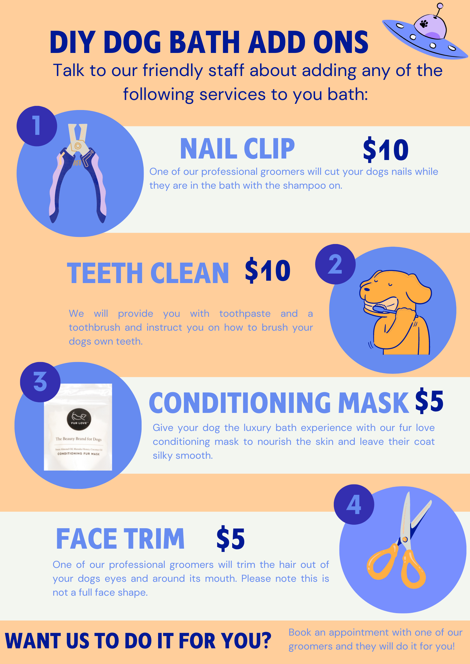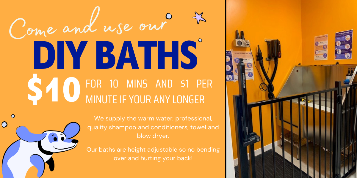 Our background is dog grooming and we know dogs love to get down and dirty, so save the mess and stress at your house by washing them in one of our Do It Yourself tubs.